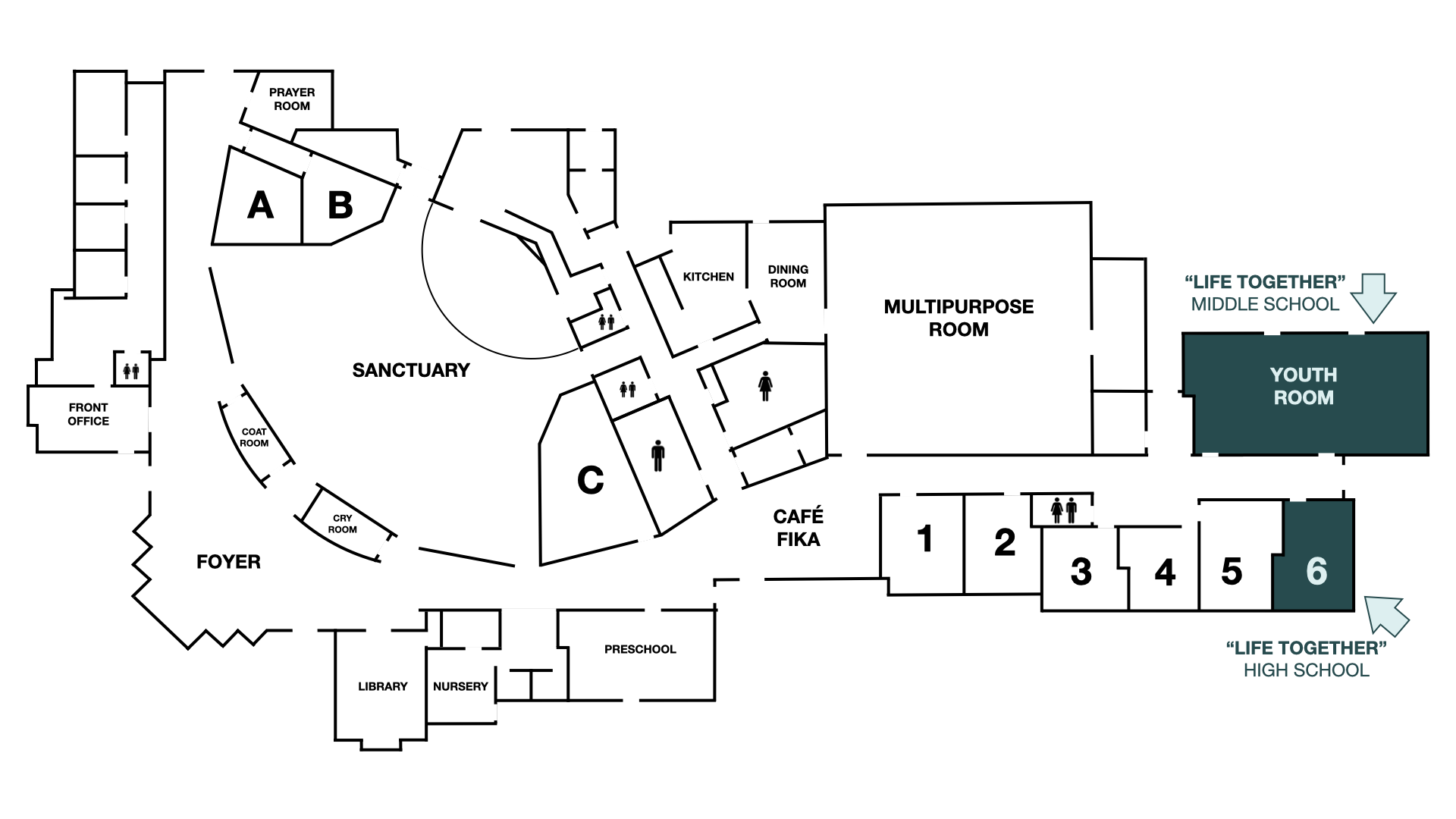 We meet in the Youth Room each week. Students can enter the building at the youth end of the building.